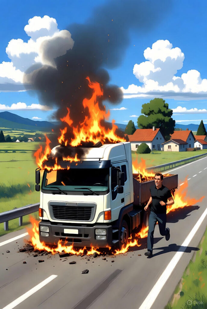 लूणकरनसर में चलते ट्रक में लगी भीषण आग, पशु आने से अनियंत्रित होकर पेड़ से टकराया