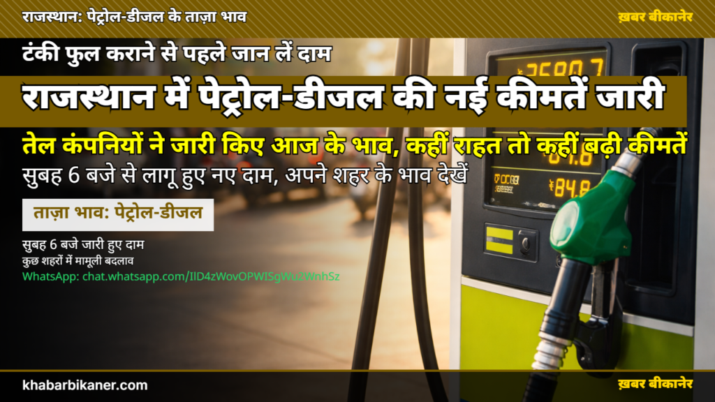 राजस्थान पेट्रोल-डीजल रेट अलर्ट: आज भी गाड़ी की टंकी फुल कराने से पहले जान लें ताजा भाव, जयपुर से बीकानेर तक क्या है तेल का गणित! April 3, 2026