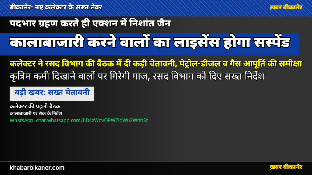बीकानेर: पदभार संभालते ही एक्शन में आए नए कलेक्टर ‘निशांत जैन’, पेट्रोल-गैस की कालाबाजारी करने वालों को दी सख्त चेतावनी, दिए ये 3 बड़े निर्देश! April 3, 2026