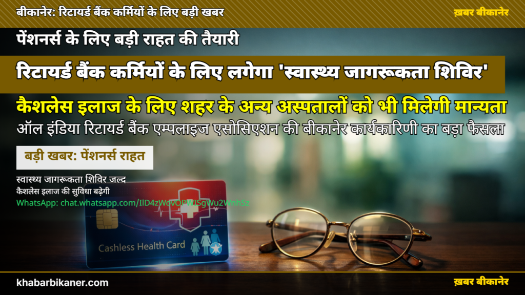 बीकानेर: सेवानिवृत्त बैंक कर्मचारियों को मिलेगी बड़ी राहत, संगठन लगाएगा ‘स्वास्थ्य जागरूकता शिविर’, कैशलेस इलाज और पेंशन संशोधन पर भी बनी रणनीति! April 3, 2026