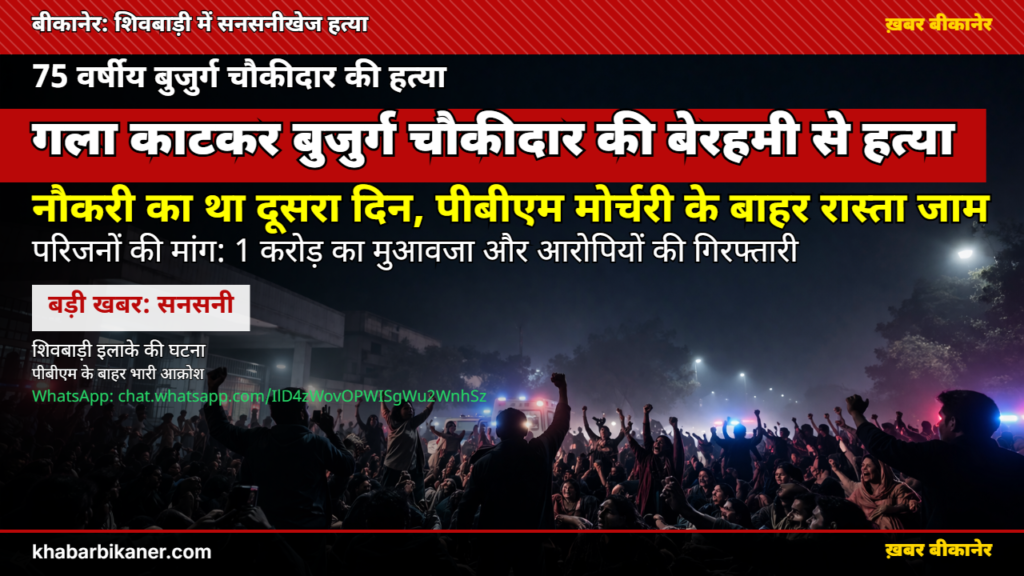 बीकानेर में खौफनाक वारदात: शिवबाड़ी में 75 वर्षीय चौकीदार की गला रेतकर निर्मम हत्या, परिजनों ने मोर्चरी के आगे लगाया जाम, एक करोड़ की मांग! April 4, 2026