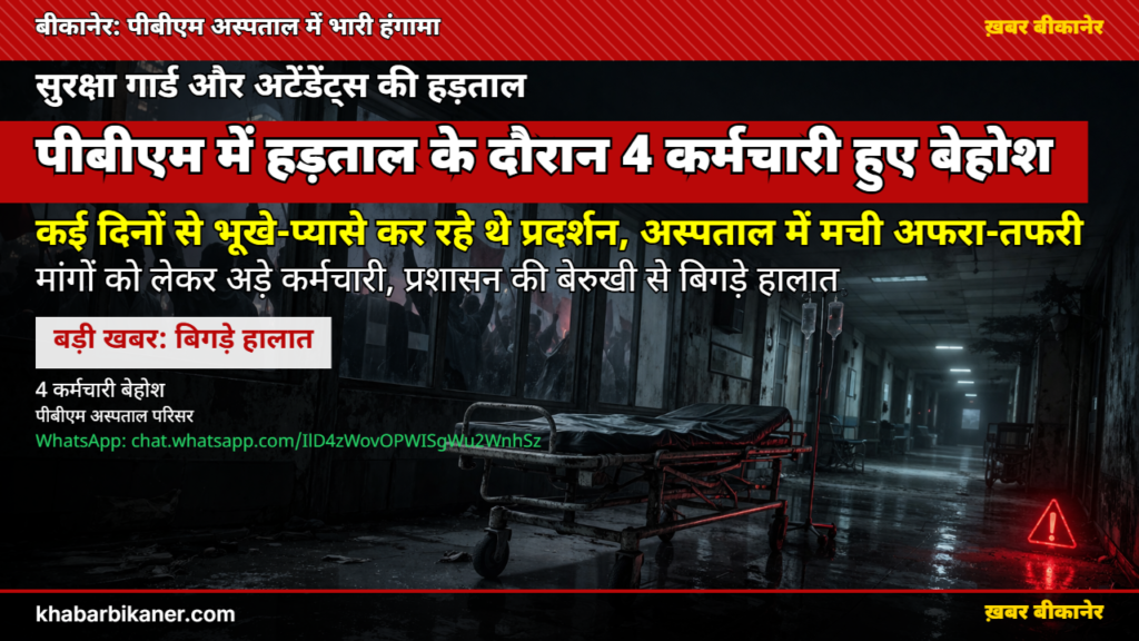बीकानेर PBM अस्पताल में हड़ताल ने लिया भयानक रूप: भूख से तड़पकर 4 प्रदर्शनकारी कर्मचारी हुए बेहोश, एक की हालत नाज़ुक, चरमराईं सभी सेवाएं! (देखें Video) April 4, 2026