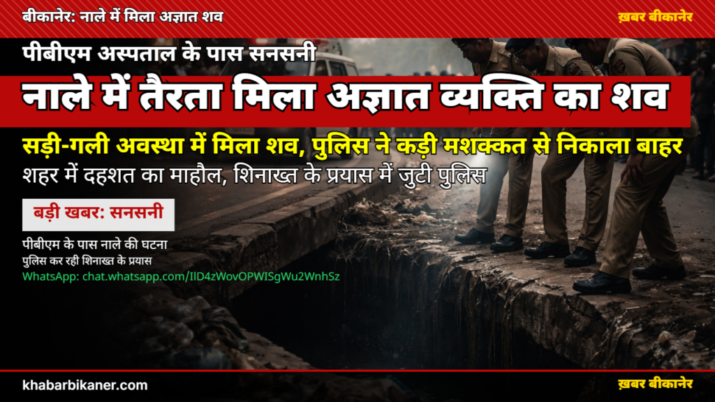 बीकानेर में सनसनी: PBM अस्पताल के पास गंदे पानी के नाले में मिला अज्ञात शव, लाश पूरी तरह सड़ी-गली, पुलिस कर रही शिनाख्त! April 1, 2026