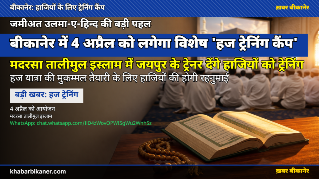 बीकानेर: हज यात्रा पर जाने वालों के लिए 4 अप्रैल को मुकद्दस ‘हज ट्रेनिंग कैंप’, हाजियों को सफर और अरकान की दी जाएगी खास तरबियत (ट्रेनिंग)! April 2, 2026