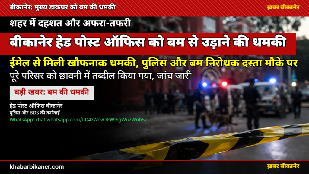बीकानेर में बड़ा हाई-अलर्ट: मुख्य डाकघर को बम से उड़ाने की मिली ईमेल-धमकी, आनन-फानन में खाली कराया गया दफ्तर, पहुंची BDS टीम! April 2, 2026