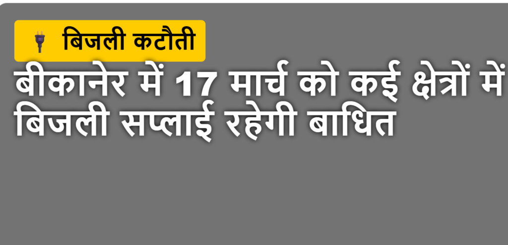 बीकानेर में 17 मार्च को कई क्षेत्रों में बिजली कटौती — विद्युत तंत्र के रख-रखाव के चलते सप्लाई रहेगी बाधित March 16, 2026