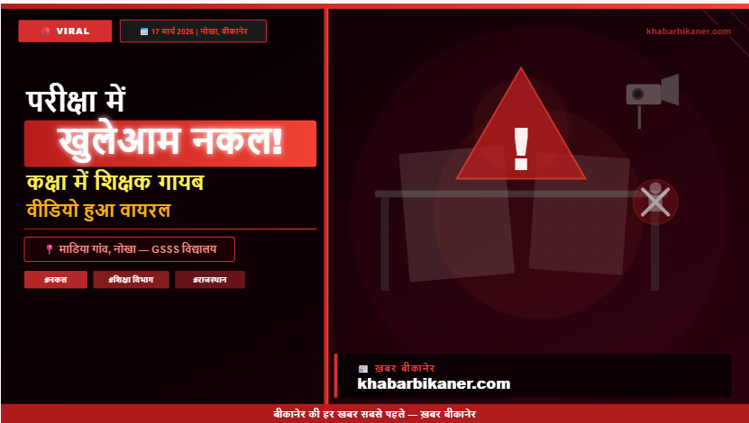 बीकानेर: नोखा के माडिया गांव के सरकारी स्कूल में परीक्षा के दौरान खुलेआम नकल — वीडियो वायरल, व्यवस्था पर उठे सवाल March 17, 2026