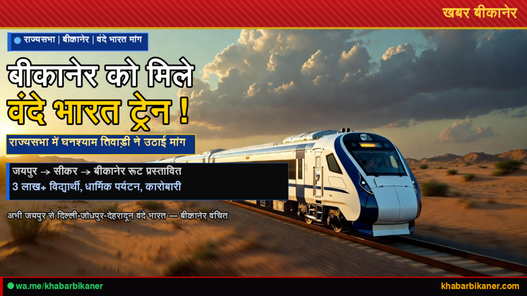 बीकानेर के लिए माँग तेज — जयपुर से सीकर होते हुए वंदे भारत ट्रेन चलाने की अपील, व्यापारियों–विद्यार्थियों–पर्यटकों को मिलेगा बड़ा लाभ March 16, 2026