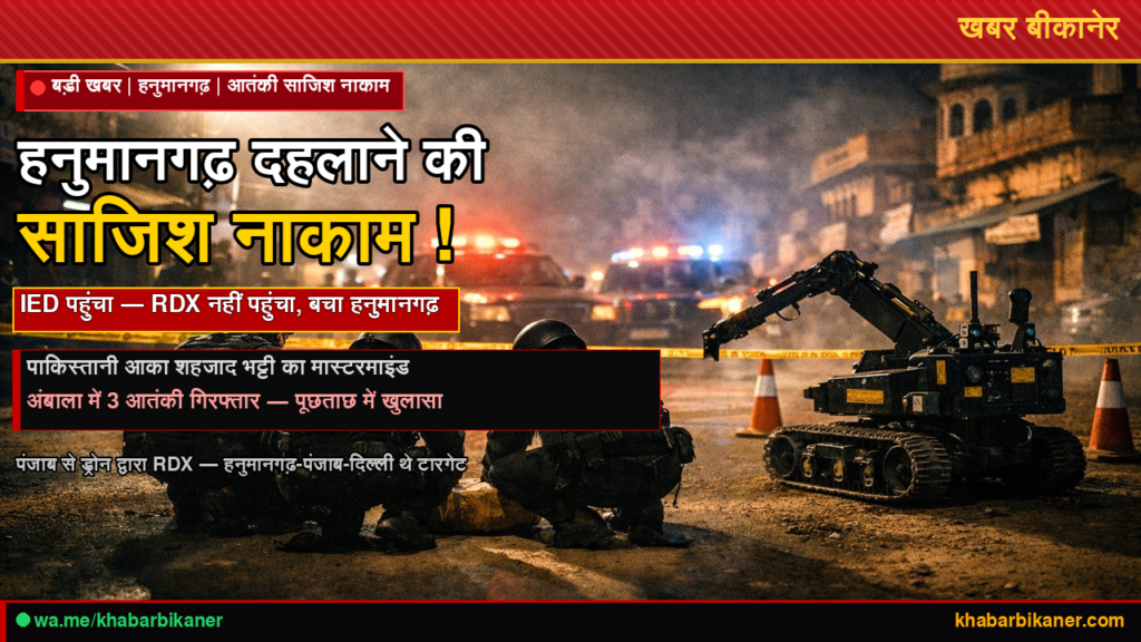 बीकानेर संभाग: हनुमानगढ़ को भेजा गया IED पार्सल, पंजाब-दिल्ली तक थी धमाकों की प्लानिंग — NIA व पुलिस ने साजिश का भंडाफोड़ किया March 15, 2026