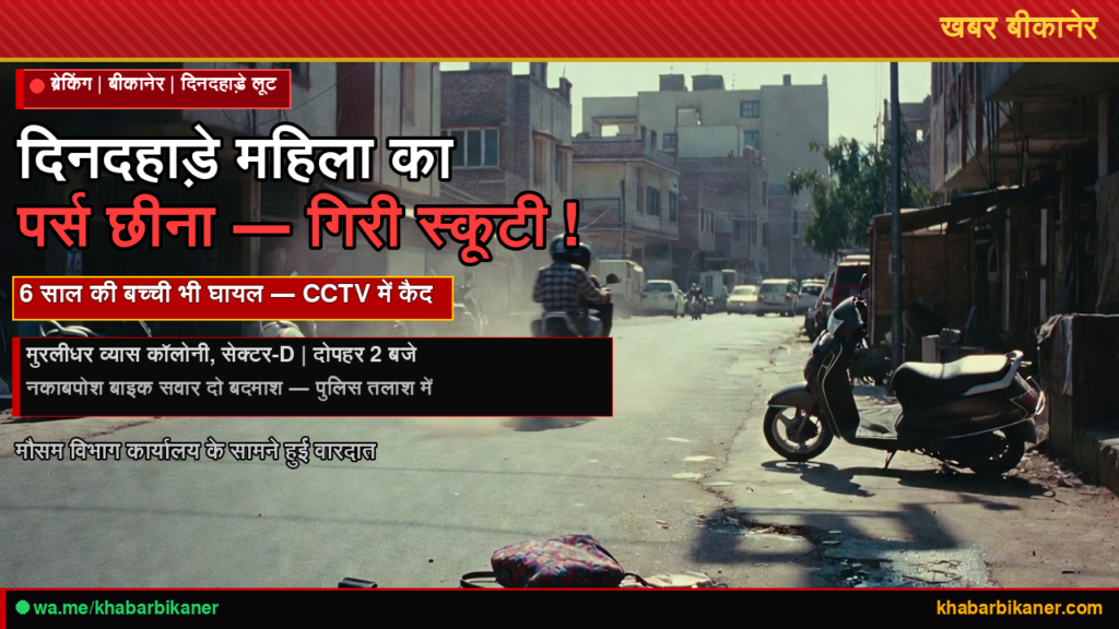 मुरलीधर व्यास कॉलोनी में दिनदहाड़े पर्स लूट — बाइक सवार बदमाशों ने स्कूटी गिराई, माँ-बेटी घायल; CCTV में पूरी वारदात कैद March 15, 2026