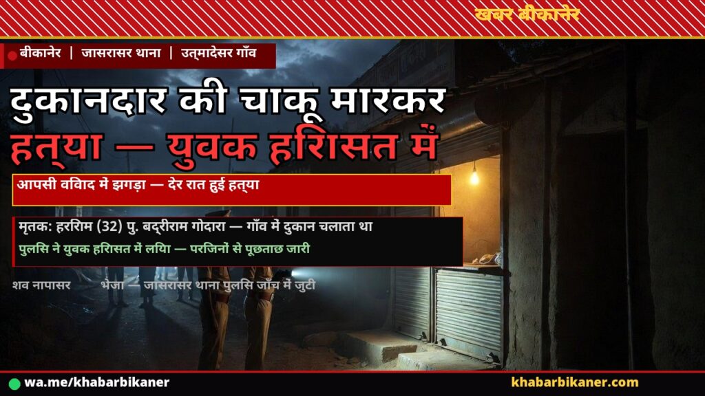 बीकानेर के उत्मादेसर गाँव में युवक की चाकू मारकर हत्या — आपसी विवाद में वारदात, एक हिरासत में March 16, 2026