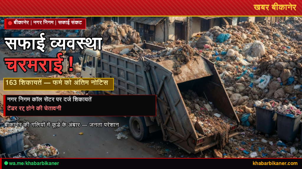 बीकानेर में सफाई व्यवस्था चरमराई: नगर निगम कॉल सेंटर पर 163 शिकायतें, फर्म को अंतिम नोटिस — टेंडर रद्द होने की चेतावनी March 11, 2026
