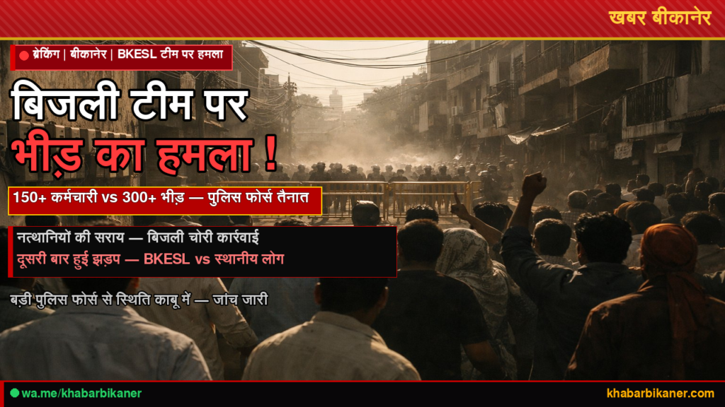 बीकानेर में बिजली चोरी रोकने गई टीम पर हमला—300 से ज्यादा लोगों की भीड़ से झड़प, पुलिस ने बल के साथ काबू किया March 12, 2026