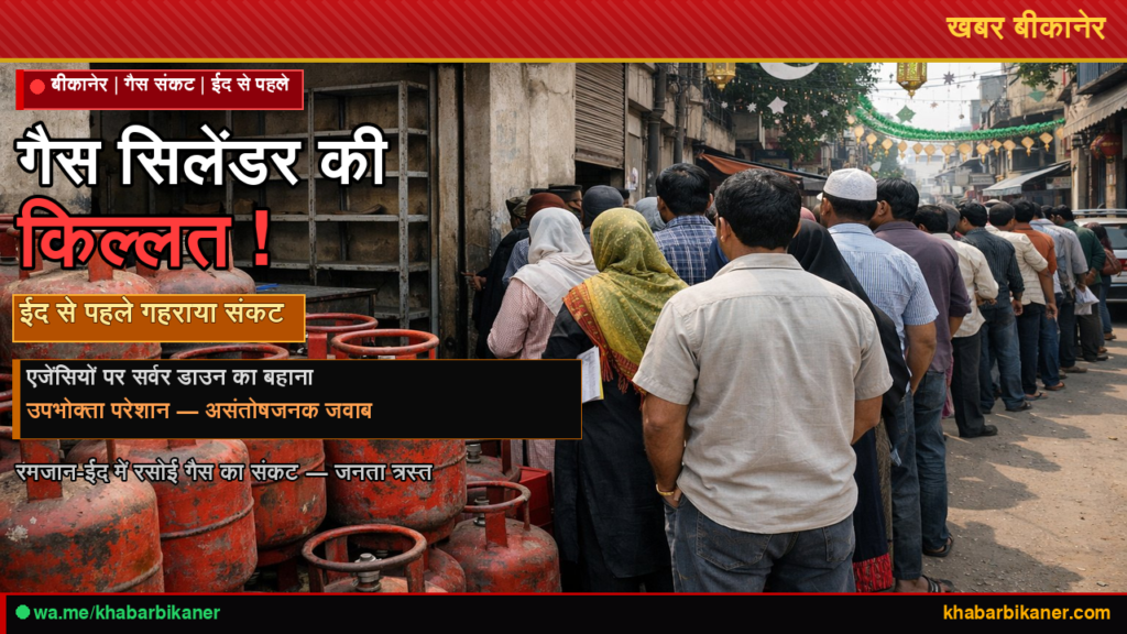 बीकानेर में गैस सिलेंडर की किल्लत बढ़ी, ईद करीब—उपभोक्ता परेशान, एजेंसियों का सर्वर डाउन March 11, 2026