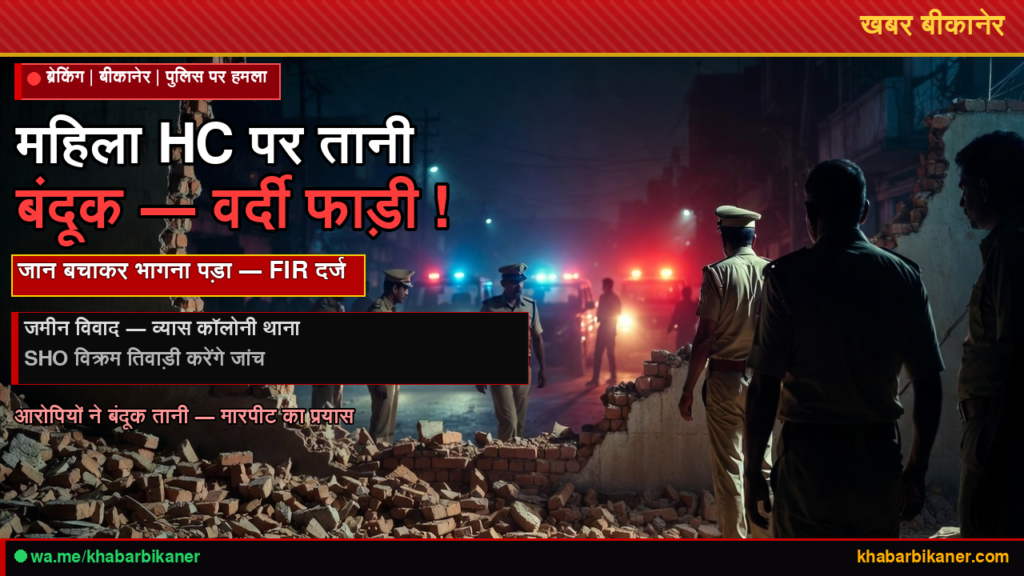 बीकानेर में जमीन विवाद के दौरान महिला हेड कांस्टेबल पर बंदूक तानी, वर्दी फाड़ी — मामला दर्ज March 12, 2026