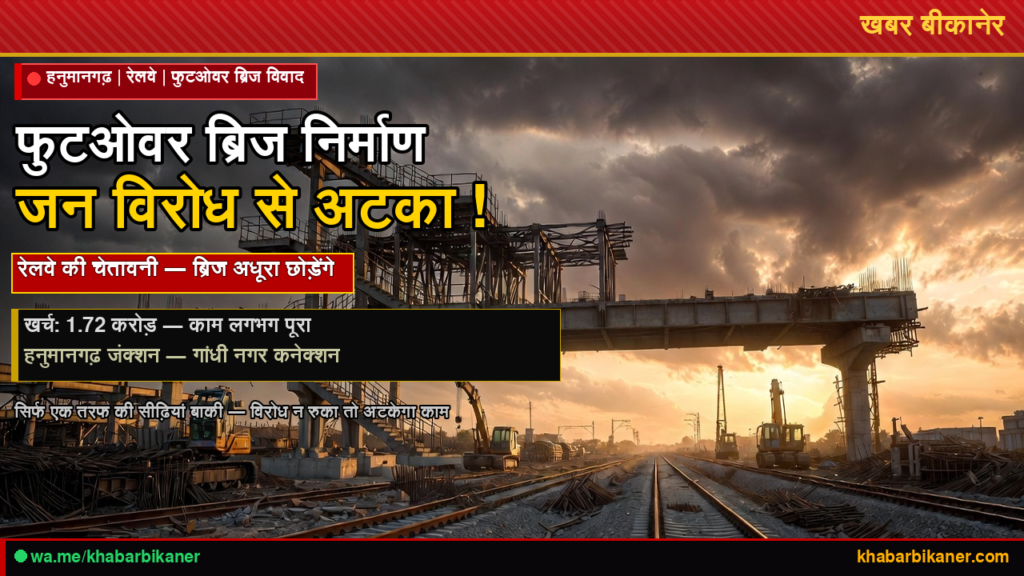 हनुमानगढ़ में फुटओवर ब्रिज निर्माण पर विवाद: जन विरोध से काम अटका, रेलवे ने चेताया—यथास्थिति में छोड़ देंगे March 12, 2026