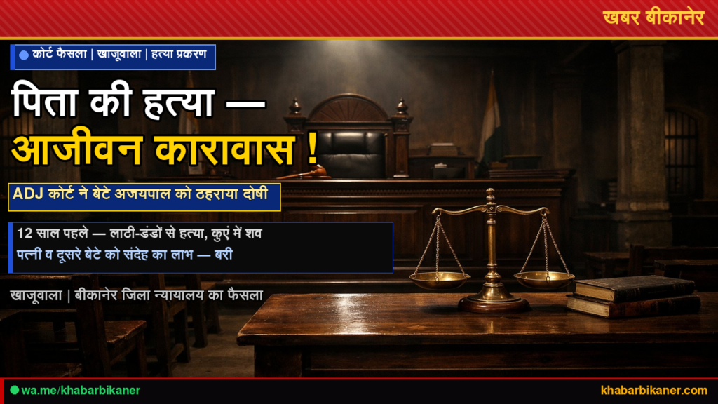 खाजूवाला में 12 साल पुरानी हत्या का फैसला: पिता की हत्या कर शव कुएं में छिपाने वाले बेटे को आजीवन कारावास March 11, 2026