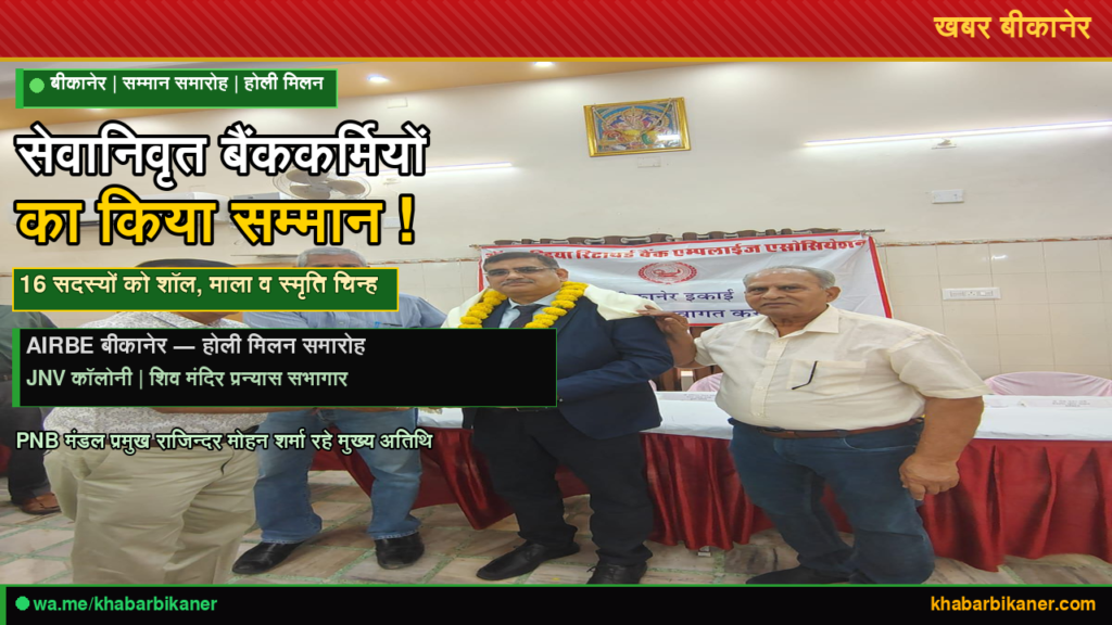 बीकानेर: रिटायर्ड बैंक कर्मचारियों का होली मिलन एवं सम्मान समारोह—2014 में सेवानिवृत्त 16 सदस्य सम्मानित March 12, 2026