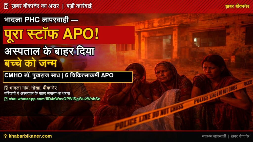 बीकानेर: भादला PHC लापरवाही मामला खबर बीकानेर की खबर के बाद CMHO की बड़ी कार्रवाई, पूरा स्टाफ APO March 5, 2026