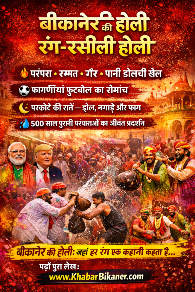 बीकानेर की होली 2026: रम्मत, गैर, पानी डोलची खेल और फागणियां फुटबॉल—मरुनगरी का रंग-रसीला उत्सव February 27, 2026