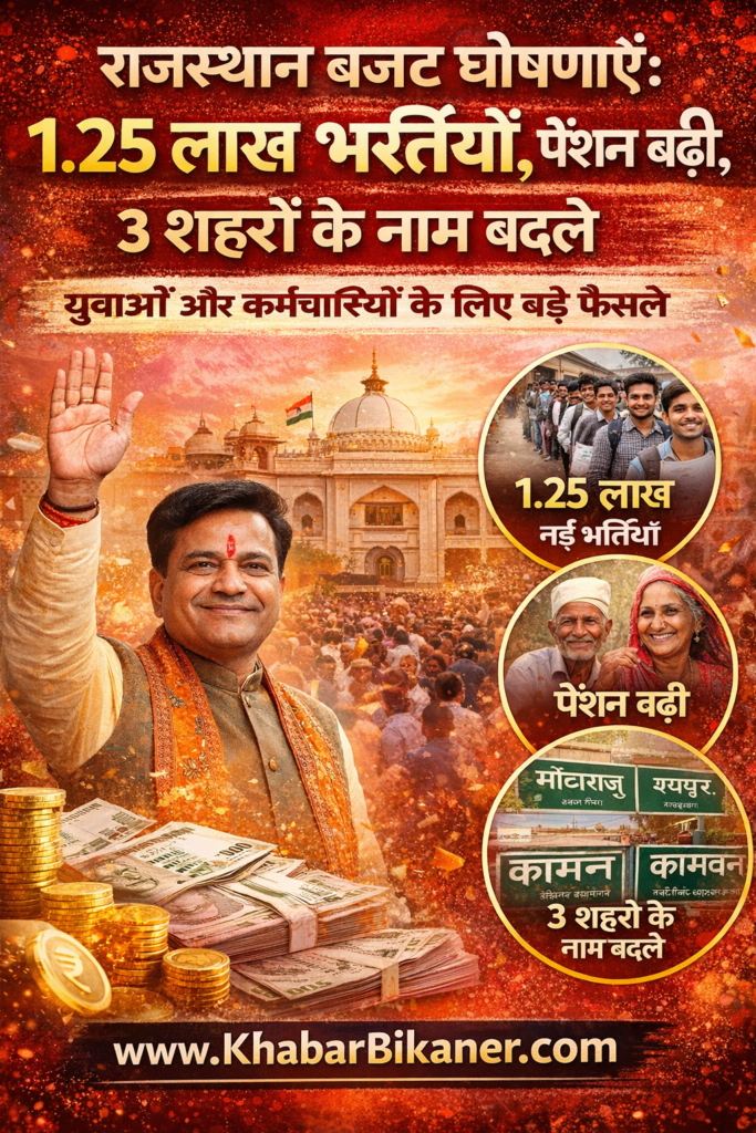 राजस्थान विधानसभा में बड़ी घोषणाएँ: 1.25 लाख नई भर्तियाँ, पेंशन में बढ़ोतरी और तीन शहरों के नाम बदलने का ऐलान February 28, 2026