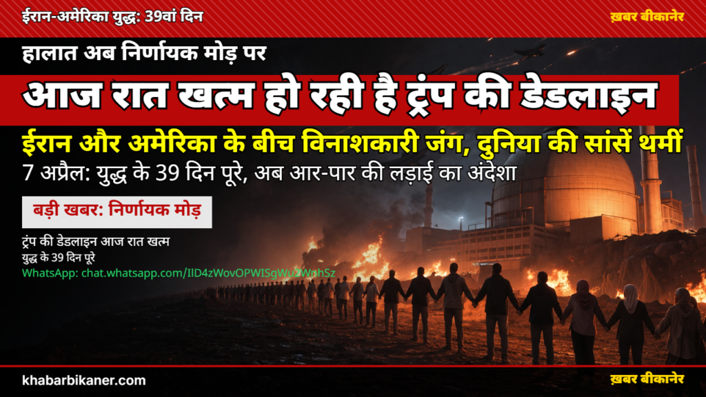 ईरान-अमेरिका युद्ध का 39वां दिन: आज रात खत्म होगी ट्रंप की डेडलाइन, ईरान में पावर प्लांट्स के चारों ओर बनी ‘मानव श्रृंखला’, क्या होगा महाविनाश? April 7, 2026