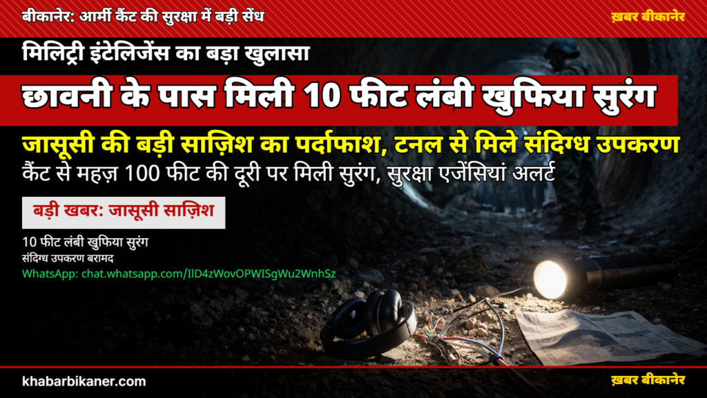 बीकानेर सैन्य छावनी के पास 10 फुट लंबी रहस्यमयी सुरंग (टनल) मिलने से हड़कंप: मिले हेडफोन और बिजली के तार, क्या हो रही थी सेना की जासूसी? April 8, 2026