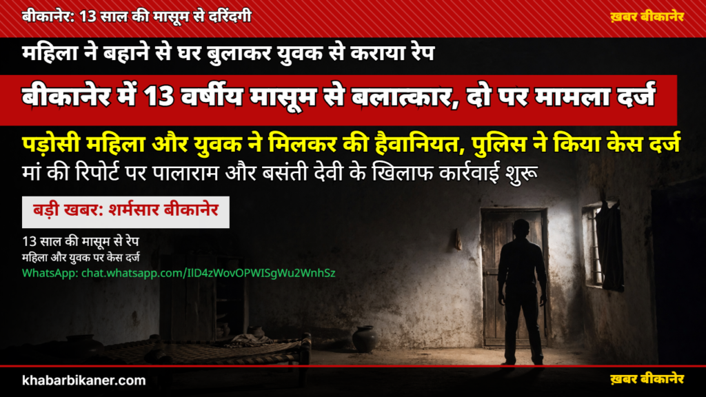 बीकानेर में इंसानियत शर्मसार: महिला ने बहाने से घर बुलाया, फिर युवक ने किया 13 वर्षीय बच्ची से दुष्कर्म, मुकदमा दर्ज! April 8, 2026