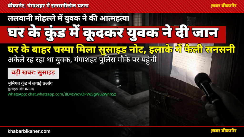 बीकानेर में दिल दहला देने वाली घटना: गंगाशहर में इकलौते बेटे ने घर के ‘कुंड’ में कूदकर दी जान, बाहर चिपका मिला खौफनाक सुसाइड नोट! April 6, 2026