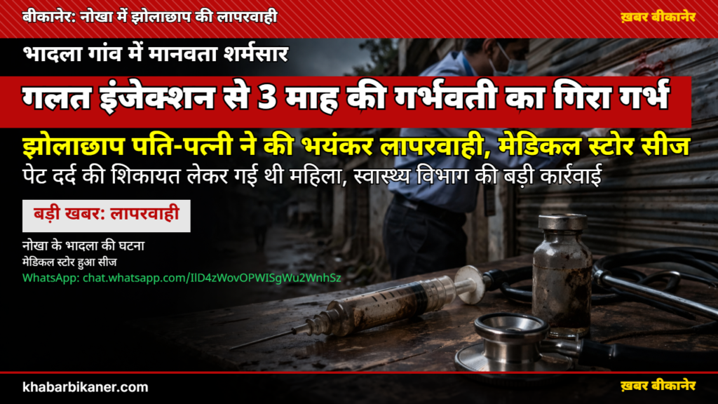 नोखा में झोलाछाप डॉक्टर की बड़ी लापरवाही: गलत इंजेक्शन और ड्रिप लगाने से 3 महीने की गर्भवती का गिरा गर्भ, स्वास्थ्य विभाग ने किया क्लीनिक सीज! April 6, 2026
