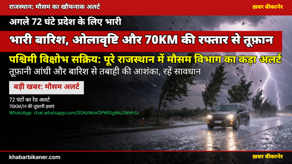 राजस्थान मौसम अलर्ट: अगले 72 घंटे प्रदेश पर भारी! बीकानेर सहित 8 जिलों में ‘ऑरेंज अलर्ट’, 70km की रफ्तार से चलेंगी तूफ़ानी हवाएं और गिरेंगे ओले! April 7, 2026