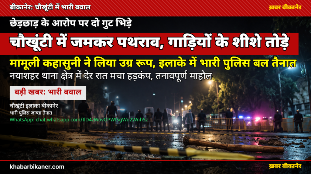 बीकानेर के चौखूंटी इलाके में भारी बवाल: छेड़छाड़ के आरोप पर दो पक्ष आमने-सामने, जमकर हुई पत्थरबाजी और गाड़ियों में तोड़फोड़, रातभर पुलिस तैनात! April 7, 2026