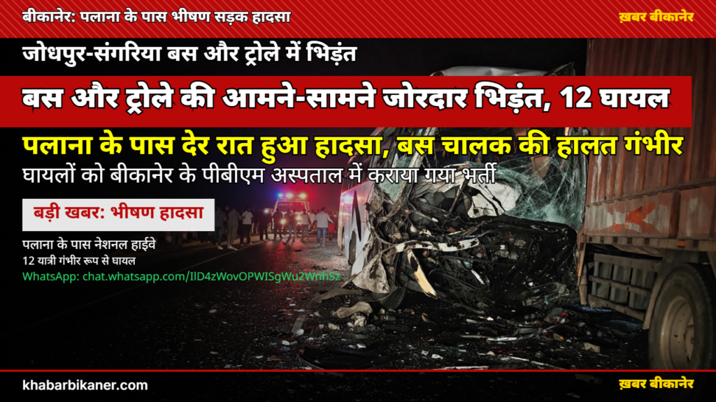 बीकानेर: पलाना के पास यात्री बस और ट्रोले में भीषण टक्कर, 12 लोग घायल; बस ड्राइवर की हालत नाज़ुक, मशहूर ‘इन्फ्लुएंसर’ मोनिका राजपुरोहित भी हुईं घायल! April 7, 2026