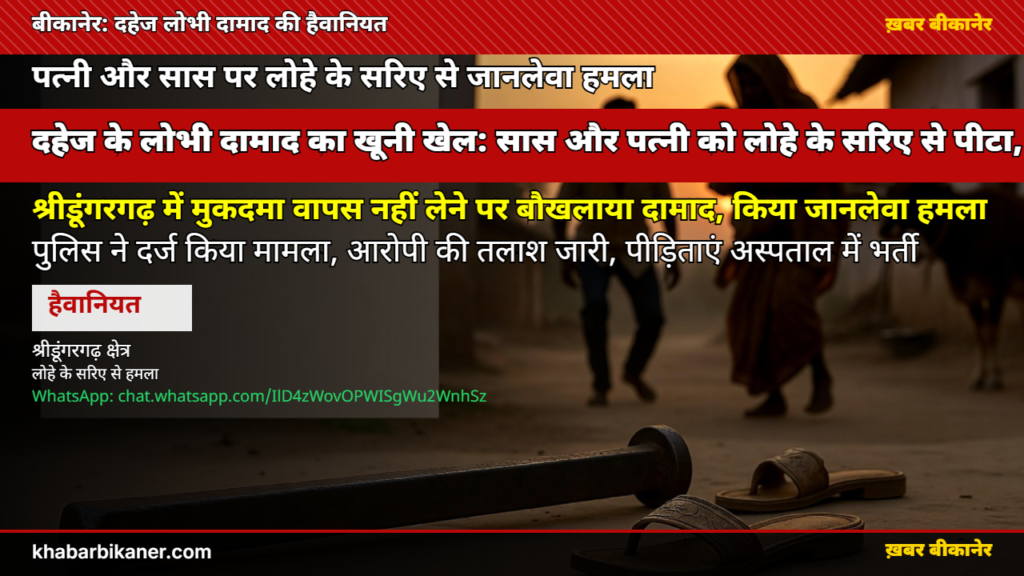 श्रीडूंगरगढ़ में हैवान बना दामाद: दहेज का मुकदमा वापस लेने का बनाया दबाव, घर लौट रही सास और पत्नी को लोहे के सरिए से पीटा, जान से मारने की दी धमकी! April 18, 2026