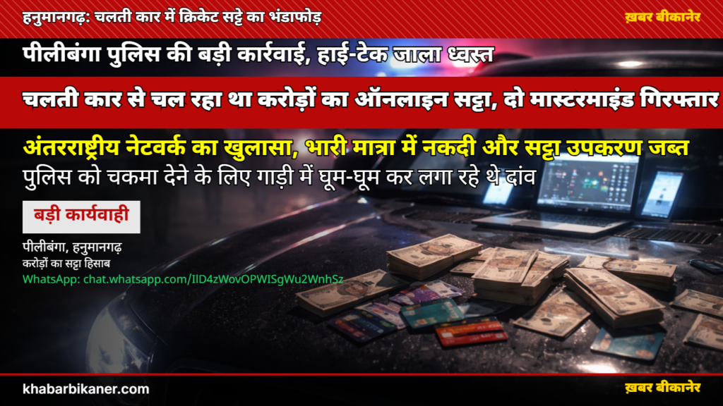 हनुमानगढ़ पुलिस का ‘सर्जिकल स्ट्राइक’: चलती कार से चल रहा था करोड़ों का ‘आईपीएल सट्टा’, पांच हज़ार यूज़र्स और विदेशी नंबरों वाले नेटवर्क का भंडाफोड़, दो मास्टरमाइंड गिरफ्तार! April 18, 2026