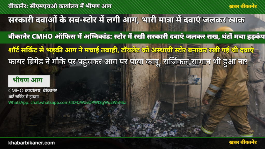 बीकानेर: CMHO ऑफिस के ‘अस्थायी’ स्टोर में लगी भीषण आग; टॉयलेट में रखी सरकारी दवाएं जलकर खाक, मची अफ़रा-तफ़री April 30, 2026