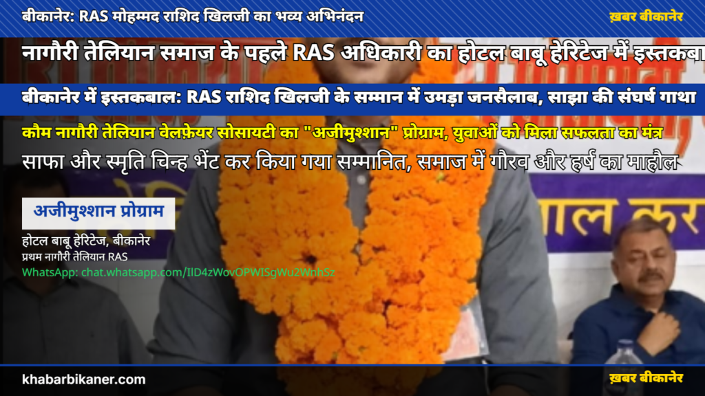 बीकानेर में बिरादरी का मान: राजस्थान के पहले नागौरी तेलियान RAS मोहम्मद राशिद खिलजी का होगा भव्य अभिनंदन; उमड़ेगा समाज April 28, 2026