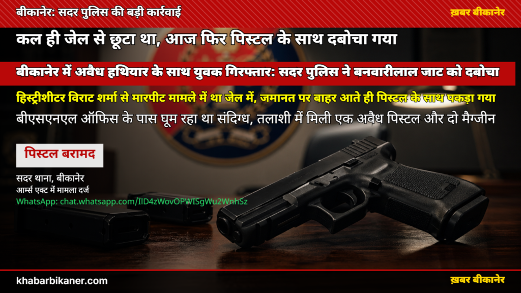 बीकानेर: जमानत पर छूटते ही फिर चढ़ा पुलिस के हत्थे; पिस्टल और दो मैग्जीन के साथ दबोचा गया बनवारीलाल जाट April 30, 2026
